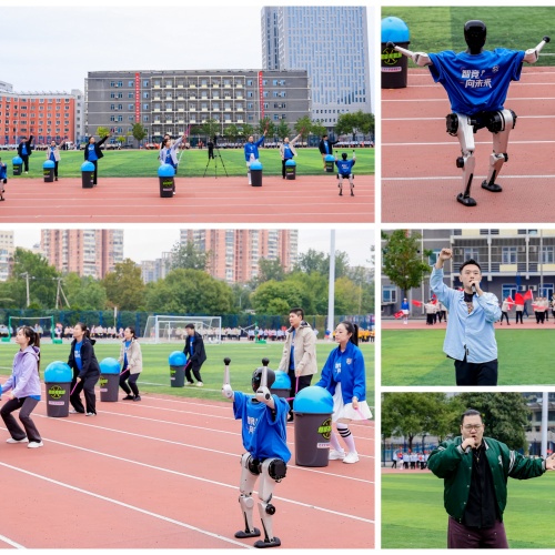 “我相信我就是我,我相信明天……”10月12日清晨,伴随着一首高亢动人、活力满满的歌曲旋律,北京大学首钢医院第六届职工运动会正式在首钢工学院的运动场上拉开帷幕。医院舞蹈协会带来的有氧鼓演奏《旗开得胜》鼓点铿锵、动作整齐。“最酷的科技彩蛋”——两台松延动力人形机器人“闪亮登场”,萌趣的身姿瞬间抓住全场目光,运动会的热烈氛围从这一刻瞬间爆满!