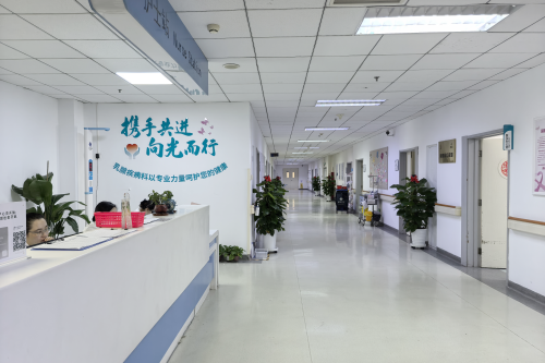 科室的文化愿景墙上,“携手共进,向光而行”的使命被赋予了鲜活的生命力,每一处设计都藏着对生命的敬畏与祝福。四只粉紫色的蝴蝶展翅向上,次第排列在墙面,翅尖沾染着柔和的光,像灵动的“希望信使”。翅纹间的每一道弧度,都承载着医护人员对病友“早日康复,重获新生”的真挚期许。曾有位患者在心愿墙上写下“盼如蝶展翅”,如今她带着健康的体魄已回归日常生活。那些曾寄托心愿的蝴蝶,也在现实里完成了最美的意象闭环——病痛的阴霾散去,生命真的如蝶般轻盈飞翔。